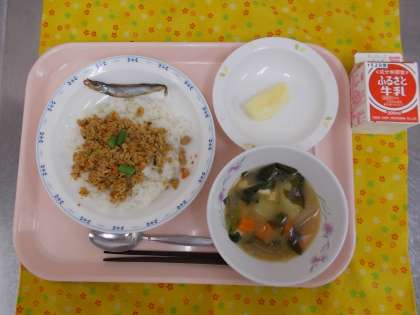 ・焼きししゃも ・じゃがいものみそ汁 ・りんご です。