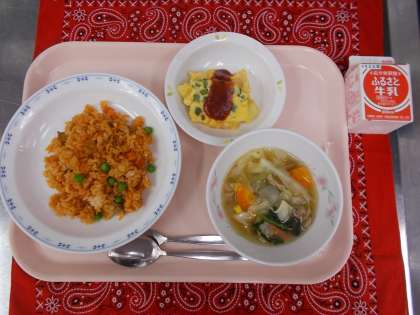 ・チキンライス ・牛乳 ・ポテトオムレツ