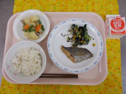 ・麦ごはん ・牛乳 ・さわらの七味焼き