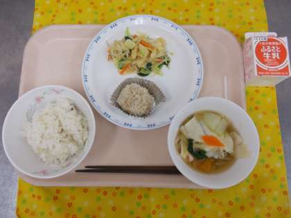 ・麦ごはん ・牛乳 ・珍珠丸子(チンジュワンズ〜肉団子のもち米蒸し)