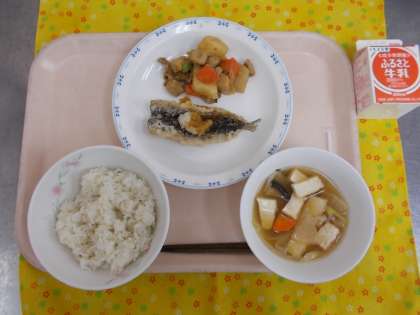 ・麦ごはん ・牛乳 ・いわしのおろし添え