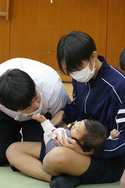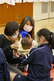 今日は3年生の家庭科で乳児体験がありました。10組の親子が来てくださり、3年生が実地に赤ちゃんと触れ合い、お母さんに話を伺いました。ほとんどの生徒が実際に赤ちゃんのきょうだいをもっていないので、貴重な体験です。来てくださった皆さん、ありがとうございました。