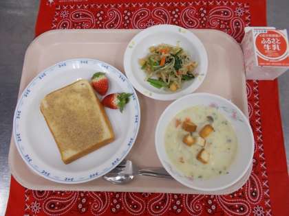 ・豆乳セサミトースト ・牛乳 ・クラムチャウダー(クルトンあり)