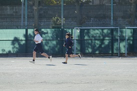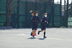 今日は土曜日授業。校庭では3年女子が長距離走をしていました。
