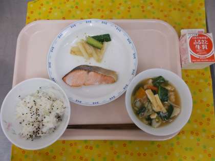 ・ごま塩ごはん ・牛乳 ・鮭の塩焼き