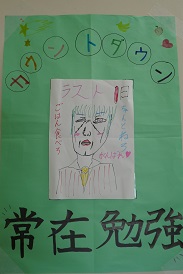 月曜の朝は学年朝礼でした。2年生は学級委員が「3年ゼロ学期」の最中、気を引き締め明日からの学年末考査に臨もうと話していました。2年生の3学期のスローガンは「常在勉強」。今日は都立の入試の日です。一層気を引き締めて学習に取り組もうとしています。