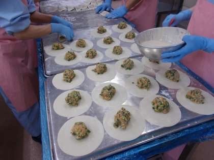 今日は、★印のメニューが尾山台中3年生のリクエスト献立です。ジャンボぎょうざには、奥沢中3年生からもリクエストの票が入りました。ジャンボぎょうざには、レンズ豆を煮て具に加えています。不足しがちな鉄分を補うためです。