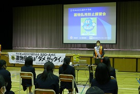 今日は玉川ライオンズクラブと玉川警察署の方に来ていただいて、薬物乱用防止教室が行われました。