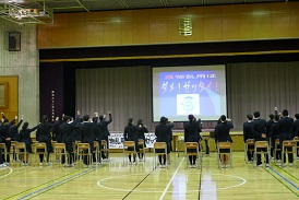 3枚目は「薬物、ダメ!」とみんなで声を合わせている写真です。