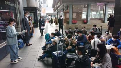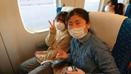 京都駅に集まり、15時33分の新幹線に乗りました。最後まで仲の良い学年です!