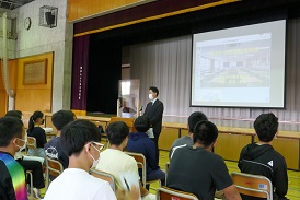 後半は近隣の文教大学付属高校の教頭先生から、高校の選び方についてお話をしていただきました。高校とのミスマッチにならないように、いろいろな高校の説明会に行き、実際に学校を見たりして高校選びをしてほしい、そうやって選んだ生徒こそが、高校側が「来てほしい」と思う生徒ですというお話がありました。3年生はとても真剣に聞き入っていました。