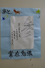 常在勉強 公開日 2022/06/20 更新日 2022/06/20 コラム 3年生のフロアには今回も「常在勉強」のカウントダウンが掲示されています。期末考査までの日数を表すものです。あと3日。1時間1時間を無駄にせず、学んだことを吸収しよう。 いいね(0)