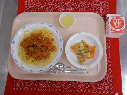 ・なすとトマトのスパゲティ ・牛乳