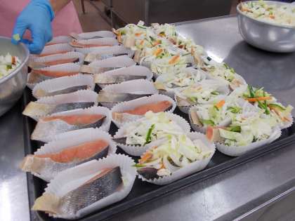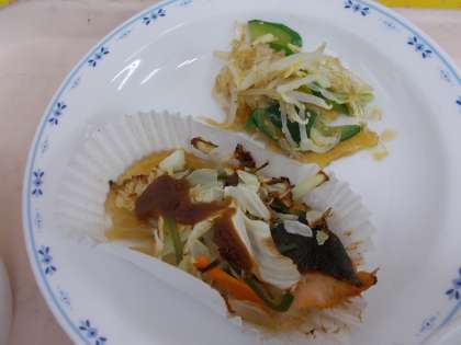 ・麦ごはん ・牛乳 ・鮭のチャンチャン焼き