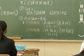 3年生の公民は社会保障制度と少子化について学習していました。