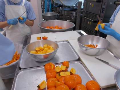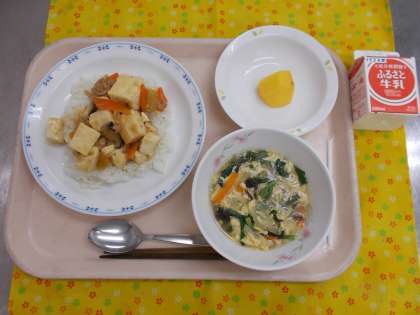 11月18日(金)の給食 公開日 2022/11/18 更新日 2022/11/18 給食室より 今日の献立は、 ・家常豆腐(ジャーチャンドウフ)丼 ・牛乳 ・にらたまスープ ・柿 です。 【食材産地】 米 秋田県 にんにく 青森県 しょうが 高知県 にんじん 千葉県 たまねぎ 北海道 にら 茨城県 柿 奈良県 今日の果物は柿です。秋の果物の1つですね。皮むき器ではむけないため、139個をペティナイフでむいていきます。 いいね(0)