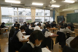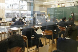 今日から期末考査です、3年生の教室は独特の緊張感があってとても中には入れません。窓から撮影しました。