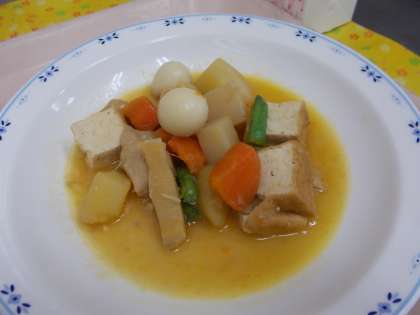 今日は、たけのこ・新じゃがいも・たまねぎ・にんじん・さやいんげんを使った『鶏肉と春野菜のうま煮』です。食材は丁寧に切り、煮汁が多くなりすぎないようだしの量を調整して煮ました。残りがちな煮物ですが、鶏肉やうずらの卵が入っているのもよかったのか、今日は比較的どのクラスもよく食べてくれていました。