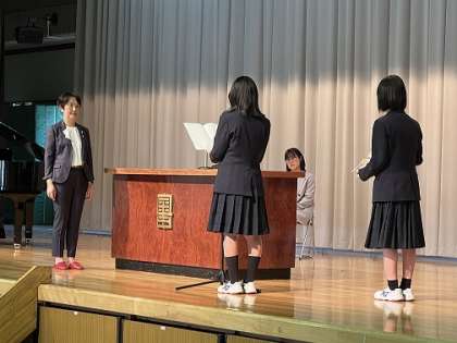 離任式1 公開日 2023/04/24 更新日 2023/04/24 できごと 先週21日(金)に離任式が行われました。今年退職されたり、異動された先生方のうち5名の先生方にご出席いただきました。 木村校長に言葉を贈る様子です。 いいね(0)