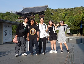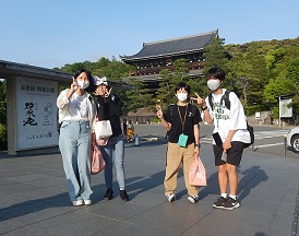 こちらも宿舎に戻ってきた班です。今回の宿舎は知恩院の三門の目の前というすばらしい立地でした。