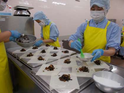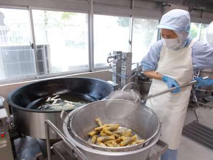 今日は気温が上がって暑いです。デザートが冷凍みかんなのは喜んでもらえそうです。ぱりぱりひじきは、名前を聞いてもどんな料理なのか想像がつきにくいかもしれませんね。ひじきの煮物にチーズを加え、春巻きの皮で巻いたものを油で揚げています。