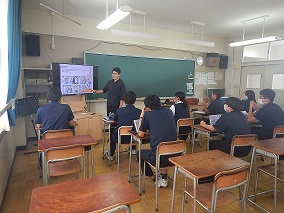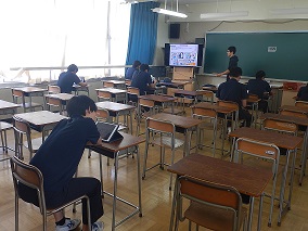 英語の授業の様子です。スピーキングテストについて説明し、練習をしています。