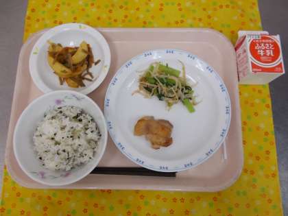・わかめごはん ・牛乳 ・鶏肉のゆずこしょう焼き