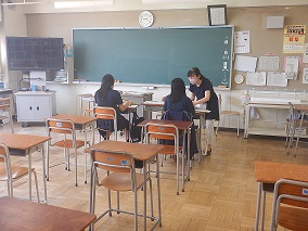 1年生の数学と2年生の社会の様子です。それぞれが、自分の持ってきた課題にしっかり取り組んでいました。