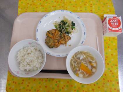 ・麦ごはん ・牛乳 ・ゴーヤのかき揚げ