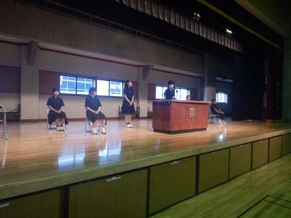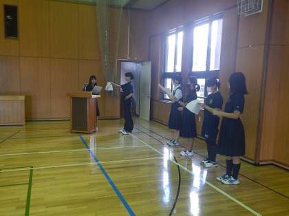今週末に行われる生徒会役員選挙のリハーサルが行われました。今後の奥沢中についてみんなで考えましょう。