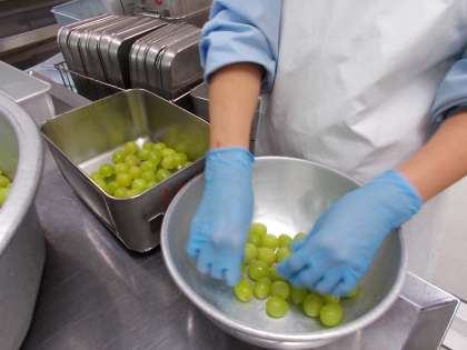 デザートは、ここ数年でずいぶんメジャーな果物になったシャインマスカットです。山梨県産のものが届きました。