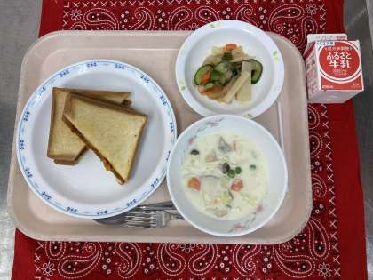 ・ピザトーストサンド ・牛乳