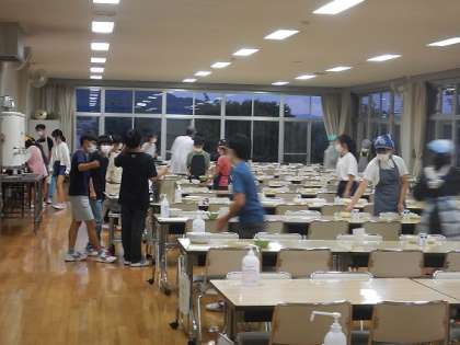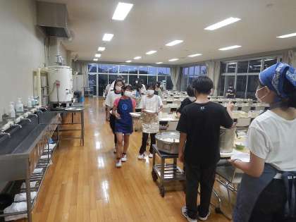 一足早く入浴を済ませた食事係が、夕食の準備をしました。
