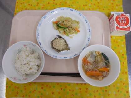 ・麦ごはん ・牛乳 ・珍珠丸子(チンジュワンズ)