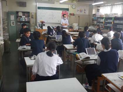 美術の授業の様子です。 レタリング文字の説明をしているところです。