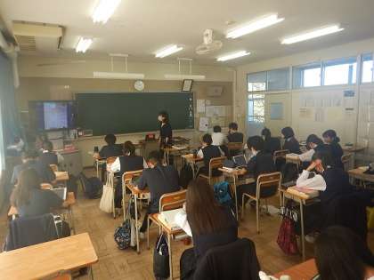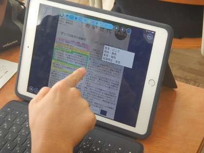 国語の授業の様子です。タブレット端末を活用し、自分の考えをマークしています。