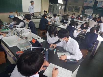 理科の授業の様子です。実験を終えた後に考察を行っている様子です。