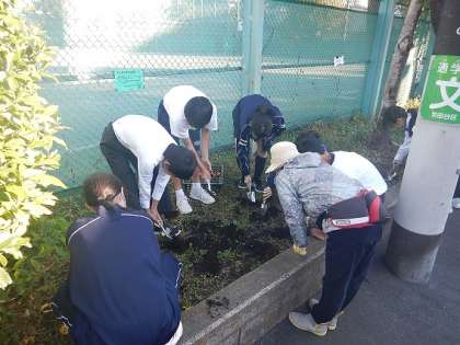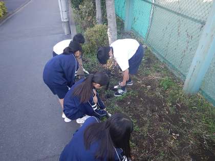 校庭の西側と南側の2か所に分かれて作業をしました。写真は西側の作業の様子です。