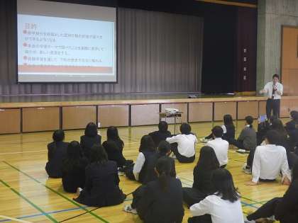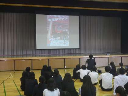 2年生が、年明け1月に予定している校外学習に向けての準備が始まりました。今日は、先日下見に行った担当の先生が作成した映像を見て、体験等についての話がありました。