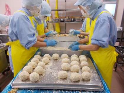 今日は、肉じゃがをコロッケにしました。いつものコロッケはマッシャーでつぶすのですが、今日はじゃがいもがゴロッと入っています。いちょう切りにしたにんじんがはみ出してしまいがちなので、ボール型に成型しています。