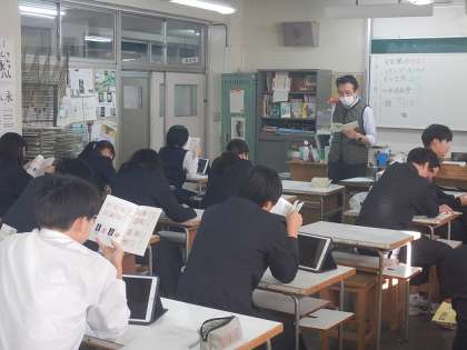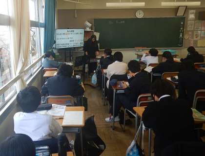 実技教科の授業の様子です。 左は1年生の家庭科、右は3年生の美術の授業の様子です。