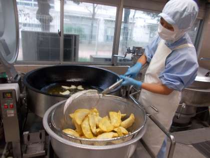 今日は、今年のリクエスト給食ではランキング入りしなかったジャンボぎょうざです。レンズ豆を加えて鉄分強化をしています。どのクラスでも、おかわりのぎょうざをめぐるジャンケンが盛り上がったようです。半分に分ける、まるごと1個おかわりするなど、クラスのカラーがいろいろあります。