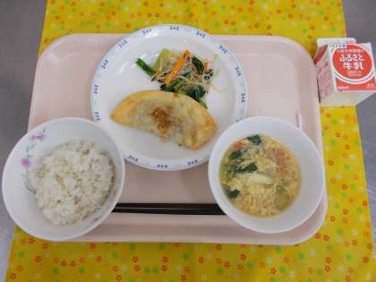 ・麦ごはん ・牛乳 ・ジャンボぎょうざ甘酢がけ