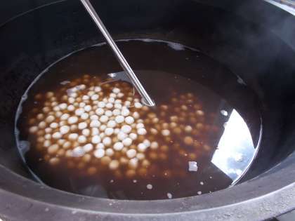今日は鏡開き。お正月に供えたもちをおろして割って食べる日です。『割る』よりも縁起の良い『開く』という言葉を使って、『鏡開き』といいます。そこで、今日は給食室で小豆をコトコト煮て手作りの白玉団子を入れた小豆白玉を作りました。小豆が苦手な生徒もいるだろうと予想していたのですが、ほぼ空っぽの食缶が返ってきました。3年生の教室では、白玉のおかわりじゃんけんが行われたようです。