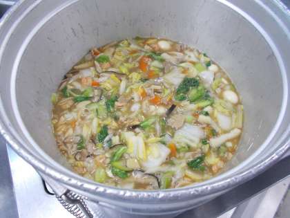 お休みが多くなってきたため、汁物はだしの量を、ご飯は米の量を調節しながら日々の給食を作っています。給食は事前発注しているので直前の変更がしにくいのですが、なるべく残らないようにしていきたいと考えています。
