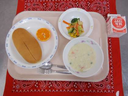・いちごジャムサンド ・牛乳 ・ホワイトシチュー