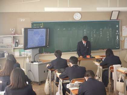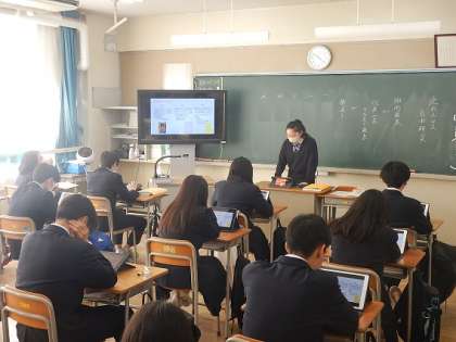 国語の授業の様子です。走れメロスについての自由研究を発表しました。