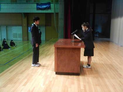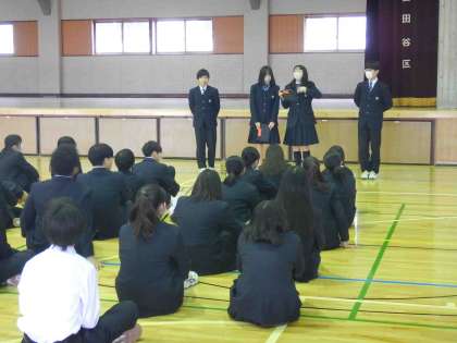 また、全校朝礼後には2学年が集会を行い、学級委員から呼びかけを行いました。