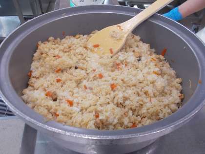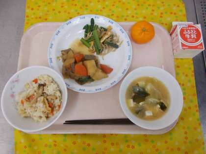 ・鶏肉としめじの炊き込みごはん ・牛乳 ・肉じゃが