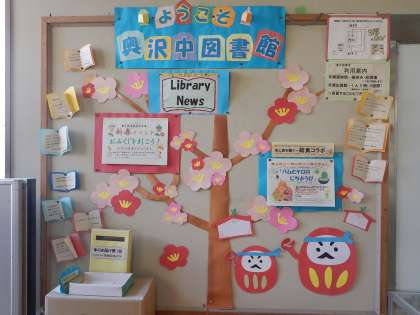 図書室の掲示板です。時期に合わせて司書さんがきれいに掲示をしてくださっています。ありがたいですね。
